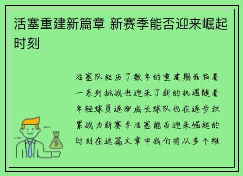 本文将探讨恩比德在2023年赢得MVP荣誉对篮球电竞热潮的引领作用。从多个角度分析,恩比德的个人成就不仅提升了他在篮球领域的影响力,同时也对篮球电子竞技产生了深远的影响。我们将从恩比德个人表现的吸引力、电竞赛事的传播效应、游戏开发与电竞产业的合作以及明星效应的放大效应等方面来详细探讨如何点燃了篮球电竞热潮。最后,文章将总结恩比德MVP荣誉的深远意义,并分析其在推动篮球电竞文化发展方面的重要作用。1...