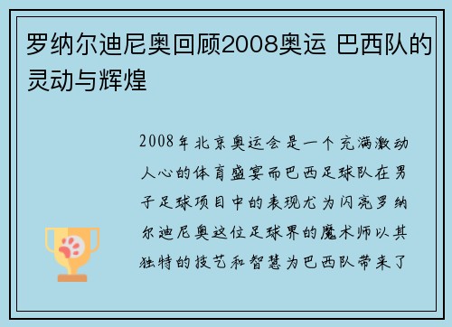 文章摘要:李宗伟与林丹这对羽毛球界的传奇对手,在里约奥运会的对决成为了体育史上最为经典的瞬间之一。通过回顾这场充满竞技张力的比赛,李宗伟从个人角度深刻剖析了自己在奥运会决赛中的心路历程、心理变化以及与林丹这一对手之间的复杂关系。虽然李宗伟最终未能赢得金牌,但他对林丹成就的尊重以及比赛中的遗憾与努力,依然为人称道。本篇文章将从李宗伟回顾自己的里约奥运表现、林丹的辉煌成就与内心的遗憾、两位羽毛球巨星的...